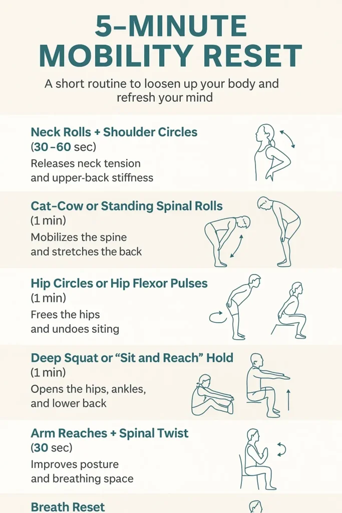 🔹 2. The 5-Minute Mobility Reset (Step-by-Step)